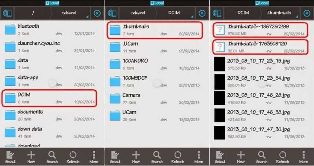 Особое внимание уделите файлу «.thumbdata3», так как именно он содержит в себе эскизы и занимает место на смартфоне