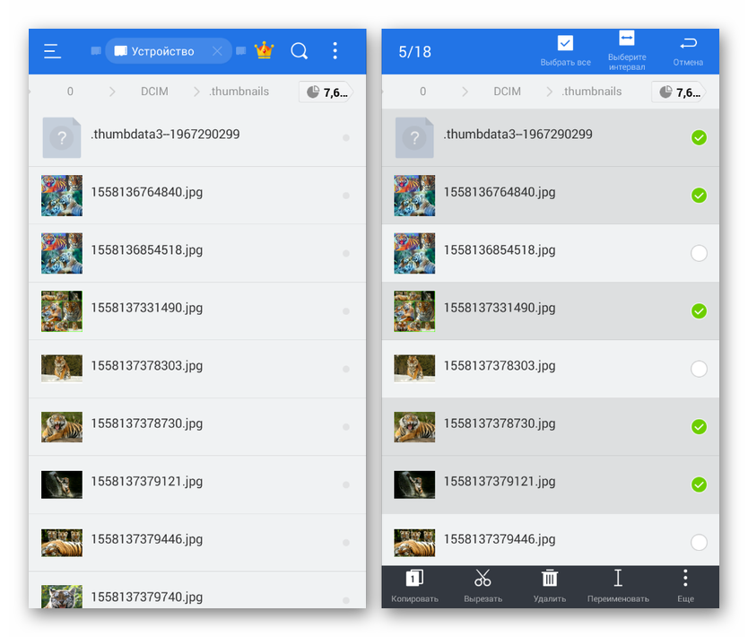 Чтобы удалить папку «.thumbnails» или отдельные вложенные файлы, потребуется ранее упомянутый файловый менеджер. В нашем случае мы воспользуемся ES Проводником, так как именно эта программа пользуется наибольшей популярностью и предоставляет наиболее понятный интерфейс.