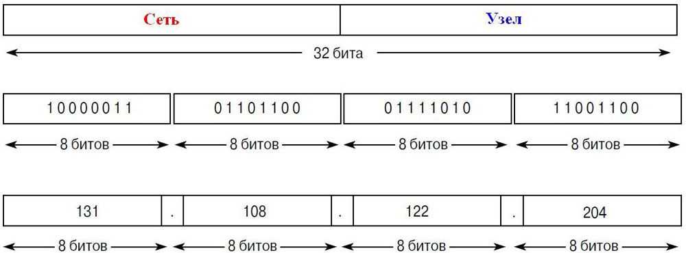 Обычно IP-адрес записывается следующим образом: 192.168.10.100. Каждая секция представляет собой 8 бит или 1 байт информации. Сервер видит эти цифры как набор единиц и нулей, для нашего удобства они записываются в обычной десятичной системе. Максимальная её длина — 3 знака, а минимальная — 1. Суммарно вся запись занимает 32 бита и теоретически может быть 232 или 4.294.967.296 ресурсов.