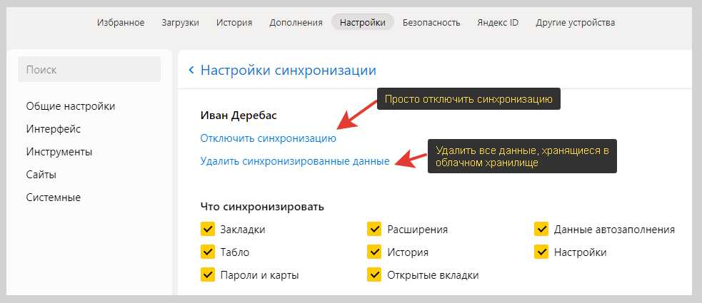 Как выключить синхронизацию в Яндекс браузере / удалить данные