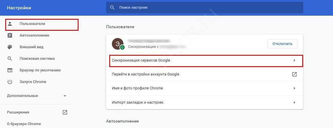 В секции Пользователи выберите Синхронизация сервисов Гугл.