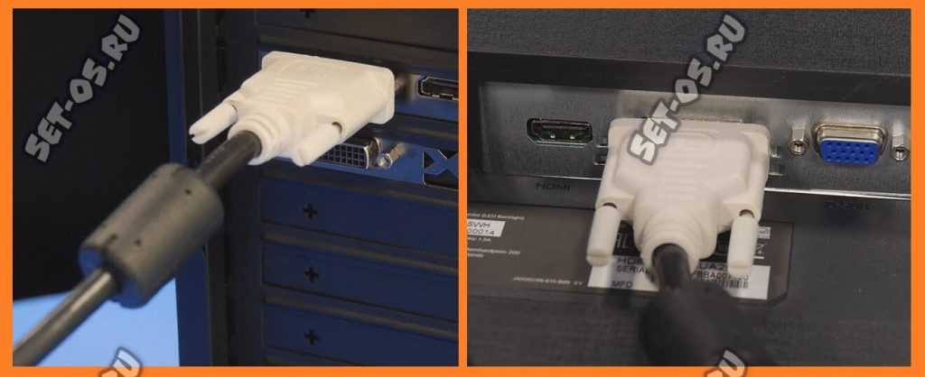 Проверяем Кабель между системным блоком компьютера и монитором. Без разницы, какое у Вас подключение — VGA, DVI, HDMI, Display Port- в любом случае надо проверить правильность и надежность его подключения кабеля. Кабель должен быть хорошо и до конца вставлен в разъём с обеих сторон.