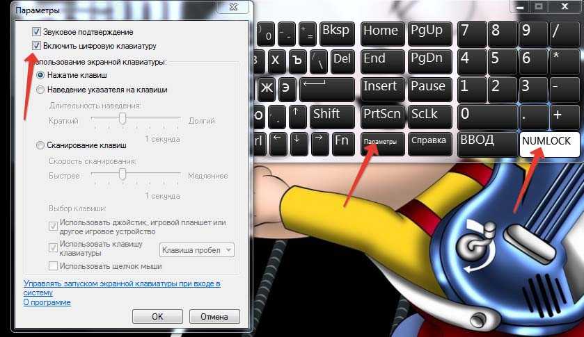 - Включите цифровую клавиатуру с экранной клавиатуры