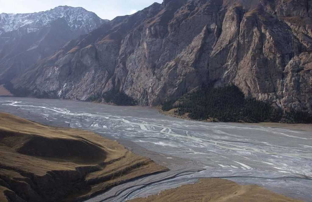 Вторая по водности и самая протяженная среднеазиатская река, Сырдарья, тоже рождается в горных ледниках одной из высочайших горных систем планеты, Тянь-Шаня. Горная речка Нарын пробегает сквозь ущелья и встречается с Карадарьей, сбегающей с Алайского хребта. Воды горных киргизских ледников и снегов объединяются в Сырдарью.