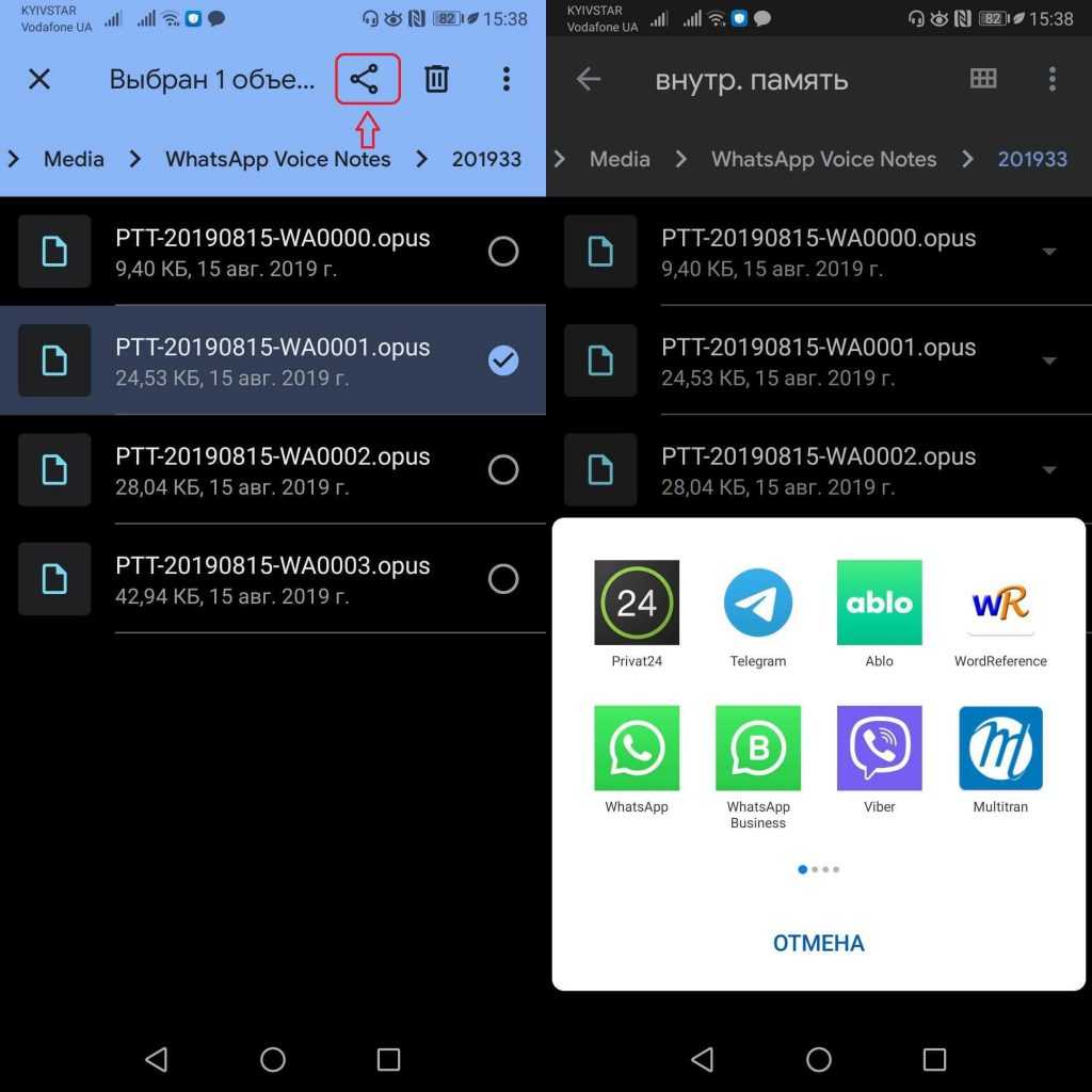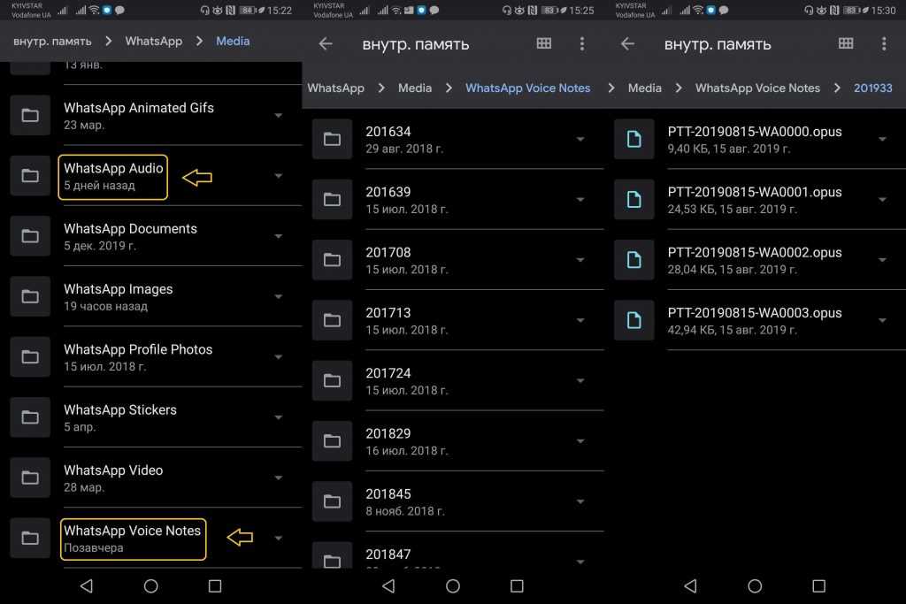 Где хранятся аудиосообщения из WhatsApp на телефоне