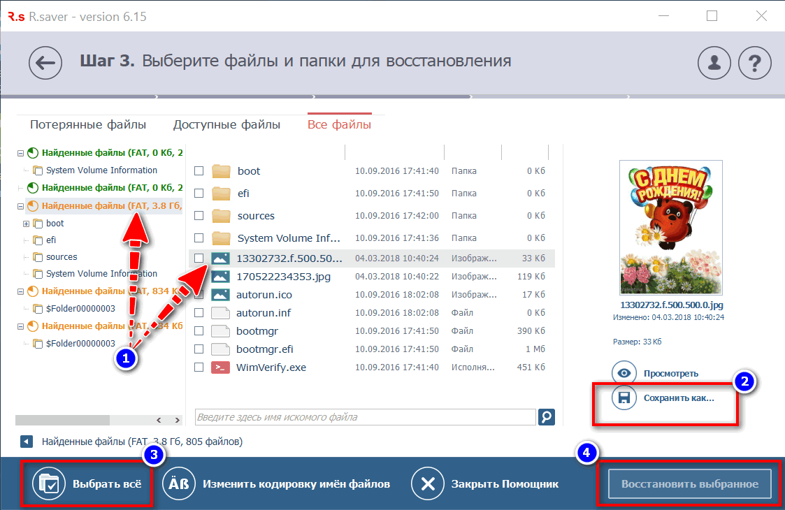 ШАГ 4. Выберите и восстановите нужные данные