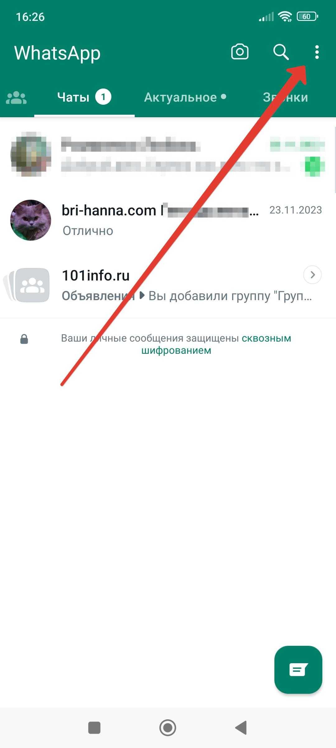 | 1 | Откройте WhatsApp на своем устройстве. |