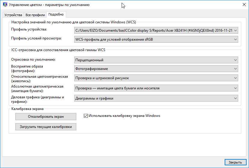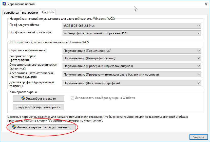 Установите на вкладке «Подробно» галку в пункте «Использовать калибровку экрана Windows», закроете дополнительное окно и сохраните настройки.