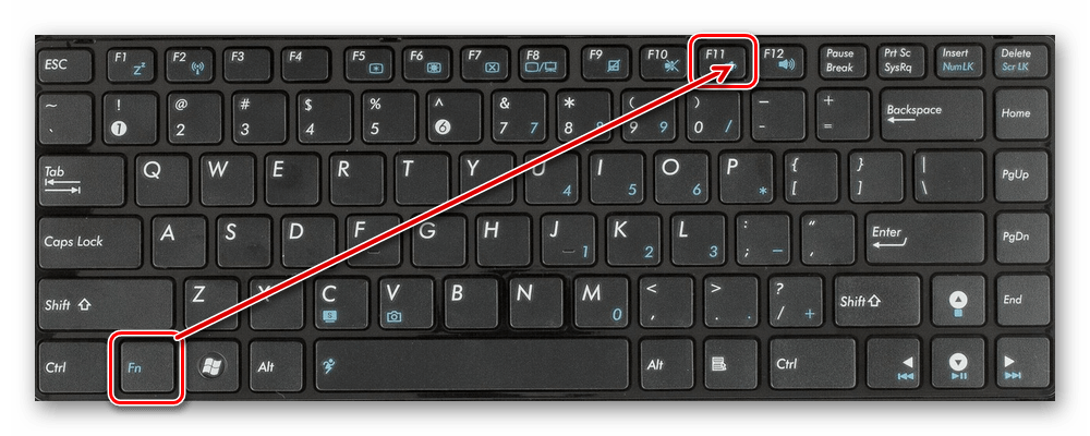 - Возможен вариант нажатия двух клавиш Fn + F11.