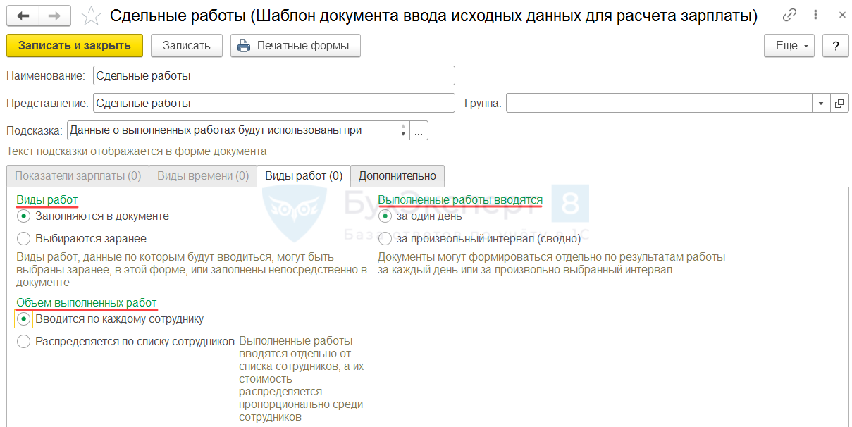Настройка начислений сдельной оплаты