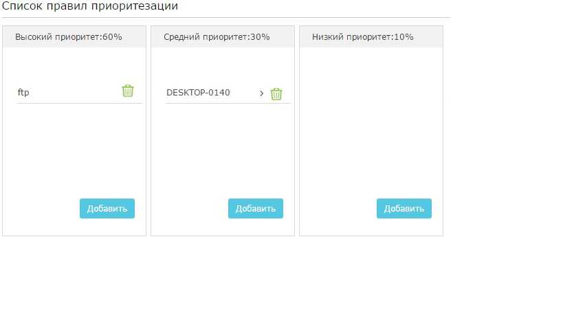 Данная настройка позволяет задать приоритет для уже предустановленных вшитых в программное обеспечение маршрутизатора программ из разных «весовых категорий». При этом заморачиваться с различными формулами и производить расчет пропускной способности сети не понадобится. Все уже придумано до нас. Без скриншота немного не понятно, поэтому привожу его: