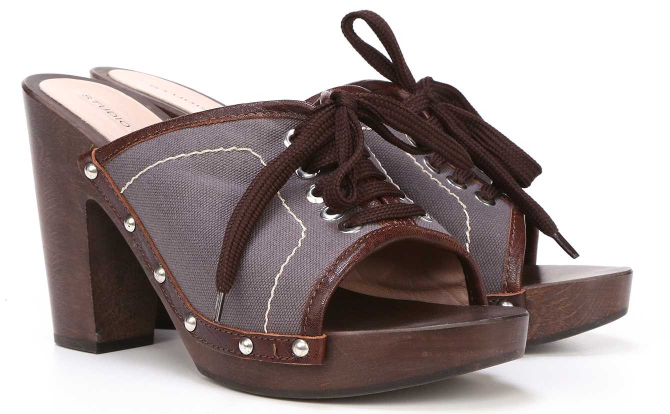 Сабо (sabo) – обувь с открытой пяткой на толстой подошве. Канонические модели сабо имеют литую платформу с каблуком и напоминают деревянные колодки. Прародителями сабо являются голландские и французские деревянные башмаки. Высокая подошва должна была защищать ступни от воды, навоза и рыболовных крючков. Первые дешевые сабо вырезали из цельного куска дерева, набивали соломой для смягчения и носили с толстыми носками. Сегодня к сабо относят любую обувь с открытой пяткой на каблуке, но мы предлагаем все же ограничить этот вид обуви массивной подошвой, цельной или с устойчивым каблуком. Носок модели может быть как открытым, так и закрытым.