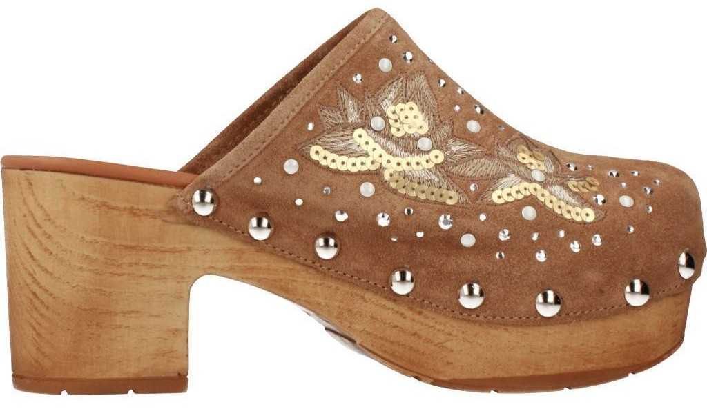 Наличие декора делает сабо оригинальной красивой обувью, которая вполне подходит для торжественных мероприятий. Классическим украшением являются заклепки, помимо декоративной функции, они выполняют еще и практическую – крепят верхнюю часть к подошве. Кроме того, к достаточно сдержанным видам украшений относят: