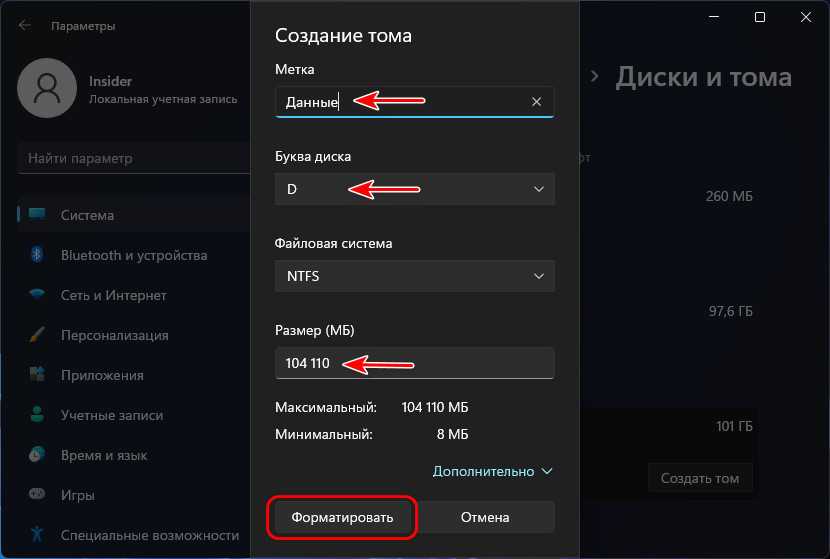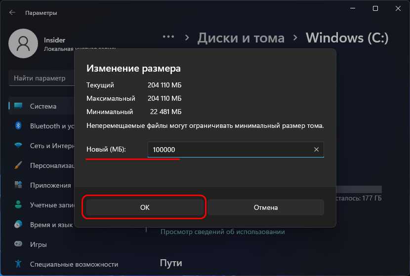 В новом окошке выставляем необходимый размер накопителя. Я советую тут ничего не менять, и, если у вас диск на 500Гб, оставить размер 476937, как предлагает система (на самом деле диск немного меньше, чем заявлено производителем).