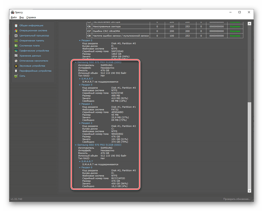 Пускай Speccy и не столь информативна, как AIDA64, тем не менее, она позволяет различить жёсткий и твердотельный диск.