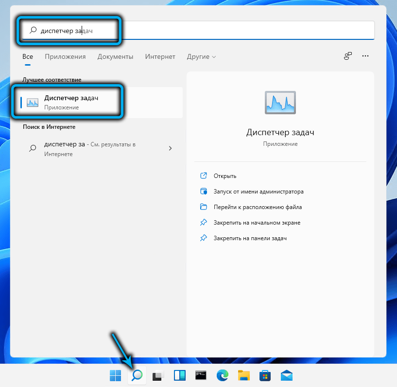 Если вы используете родной проводник, можно ускорить поиск, начав набирать в панели поиска taskmgr.exe – нужный результат появится уже после ввода первых 4-5 букв.