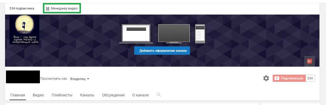 Тут, помимо общей информации о Вашем профиле, есть специальный раздел «Менеджер видео», который помогает работать со своим контентом, отображает аналитику, статистические данные и прочие тонкости. Именно туда необходимо зайти для того, чтобы найти фонотеку.