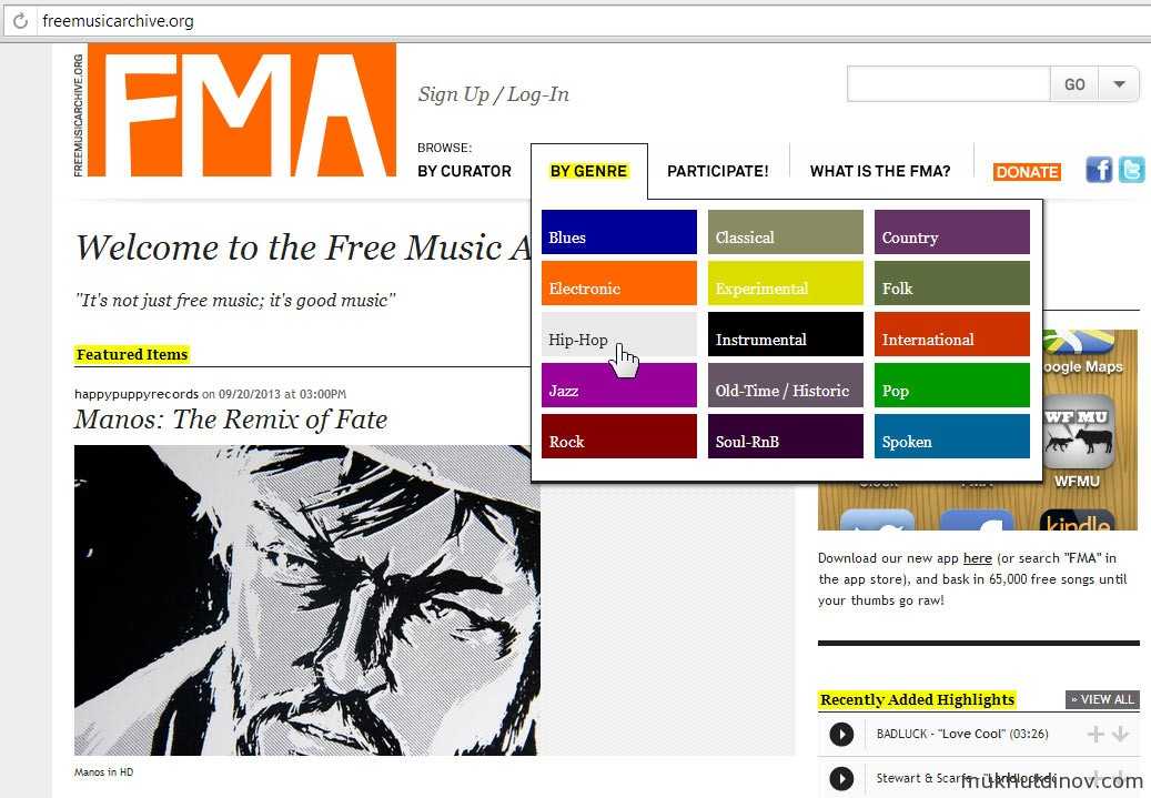 Как я уже упомянул выше, бесплатную музыку можно найти и на множестве других сайтов, к примеру на сайте freemusicarchive.org .