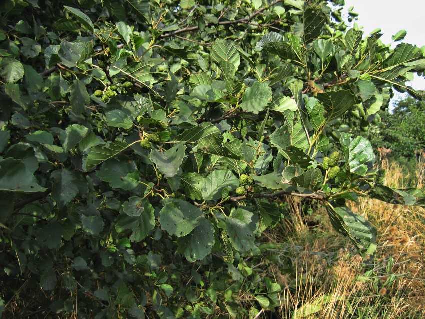 Также называется липким. У него темная трещиноватая кора, клейкие молодые побеги и овальные листья, но самая узкая часть «яйца» находится на черенках. На задней стороне может быть небольшая вмятина. Ольха любит влажность, но не будет расти в болотистых местах. Он также не дает корней.