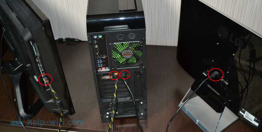 Монитор может быть подключен так же по HDMI (как у меня на фото ниже), по DVI, или даже по VGA. В итоге к ПК будет подключено два экрана.