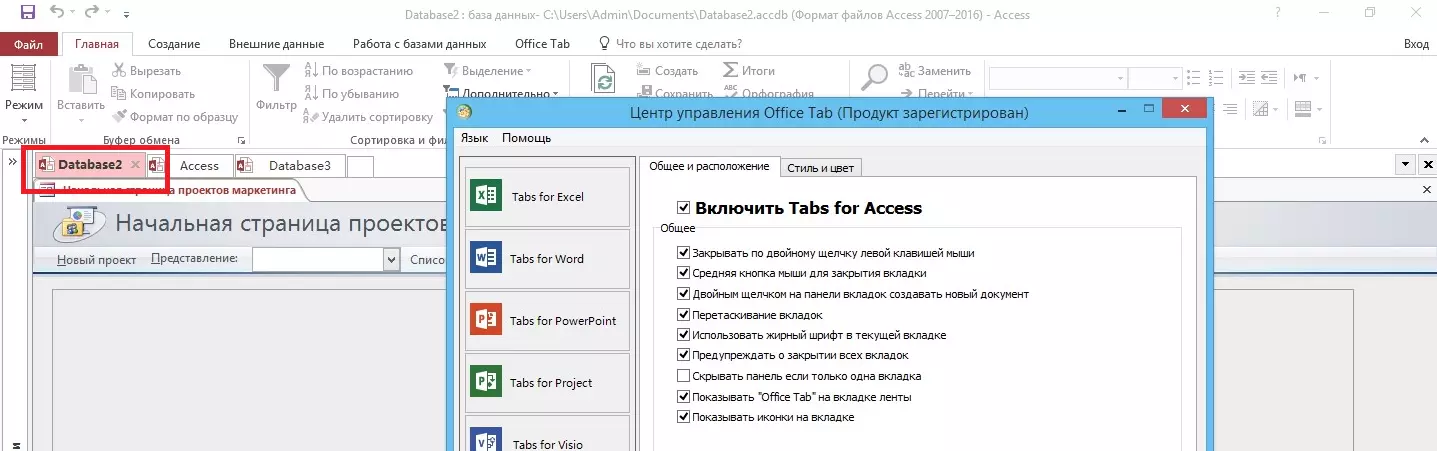 Настраивать характеристики отображения элементов Офис Таб можно как через центр управления (приложение, которое можно найти в меню «Пуск» или на рабочем столе), так и отдельно в каждой открытой программе MS Office.