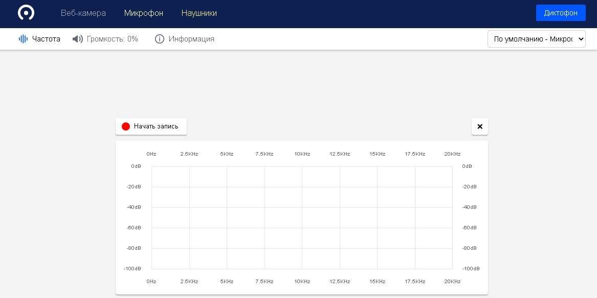 Еще одно простое онлайн-приложение для тестирования — Webcammictest.com. Чтобы запустить проверку нужно только нажать кнопку «Начать запись ». С помощью этого сервиса можно понять, как вас будет слышать собеседник, а также оценить качество звука и уровень громкости. Кроме того имеется также функция записи. Воспользоваться этим онлайн-сервисом можно совершенно бесплатно и без регистрации. Сайт полностью доступен на русском языке. Если на компьютере установлено сразу несколько аудиоустройств можно выбрать то, которое необходимо проверить.
