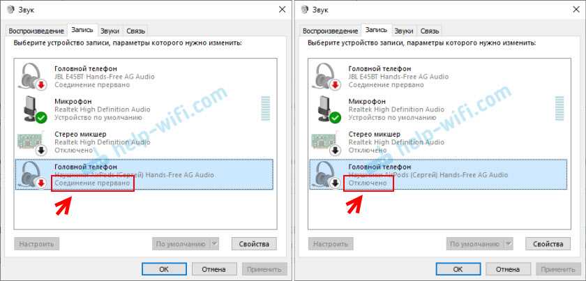 - Микрофон (Головной телефон) не отображается в настройках звука в Windows 10. Или отображается, но устройство отключено («Соединение прервано», «Отключено»).
