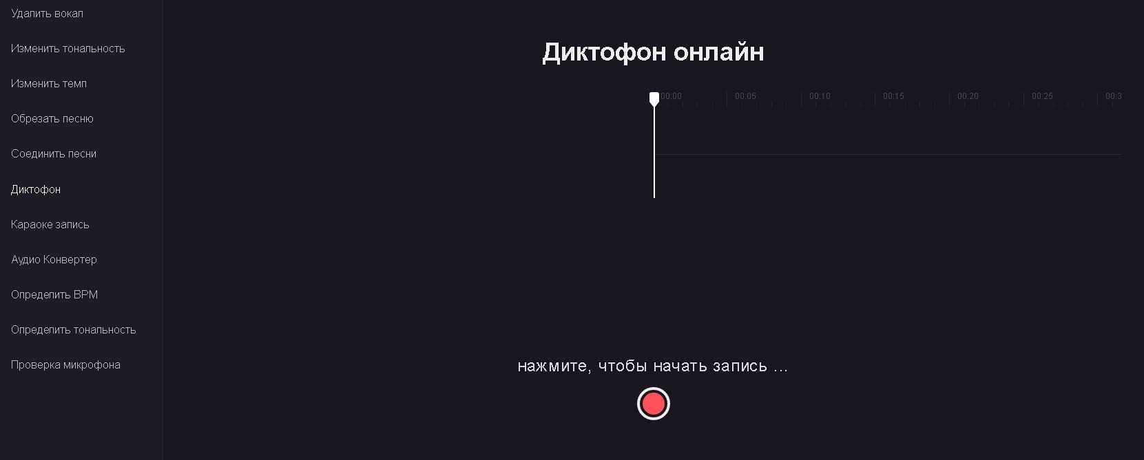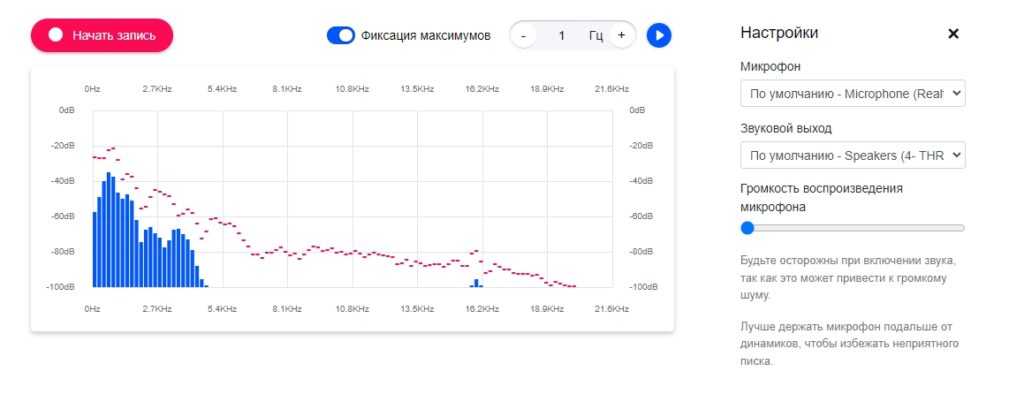 - Некоторые сервисы позволяют увидеть уровни, а также герцы вашего голоса. Ищем кнопку записи и кликаем по ней.