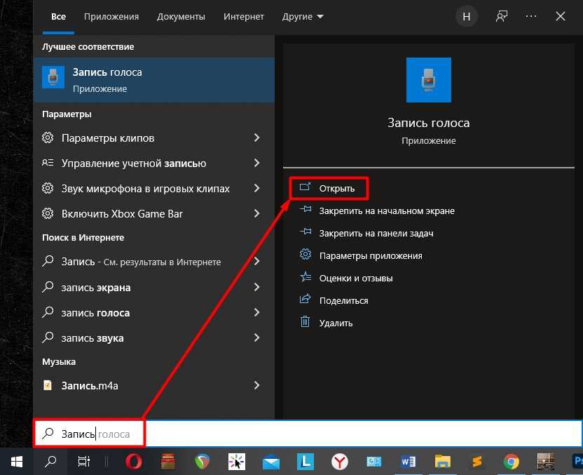 Еще один способ проверить микрофон на ноутбуке или компьютере в Windows 10 – это использовать встроенную программку записи.