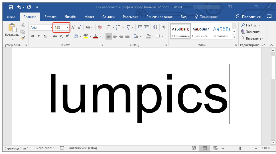 4. Введите необходимое значение размера шрифта и нажмите «ENTER», не забывая о том, что текст все же должен как-то уместиться на странице.