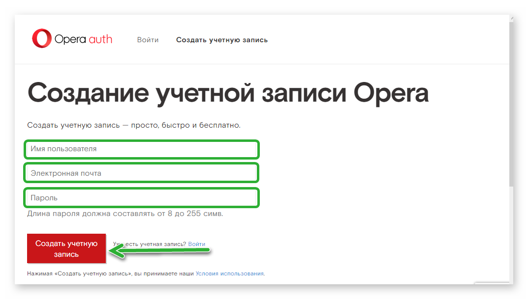 Первое что нужно сделать для того, чтобы иметь возможность синхронизировать данные браузера Опера между разными устройствами — это зарегистрировать свою учётную запись.