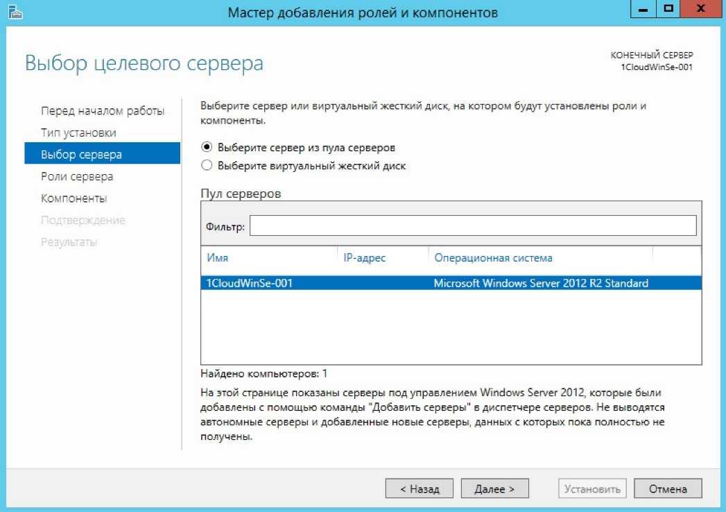 В рамке с пулами появится список серверов, надо кликнуть по нужному и щелкнуть «Далее».