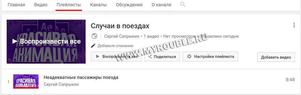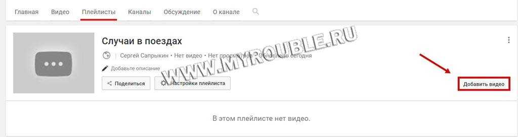 Создадим плейлист под названием «Конфликты в поезде» и занесем в него наш ролик