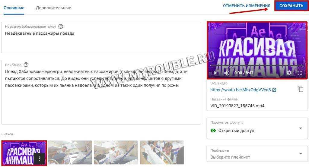 После выбора файла с компьютера превью видео обновится, остается нажать «Сохранить» в правом верхнем углу: