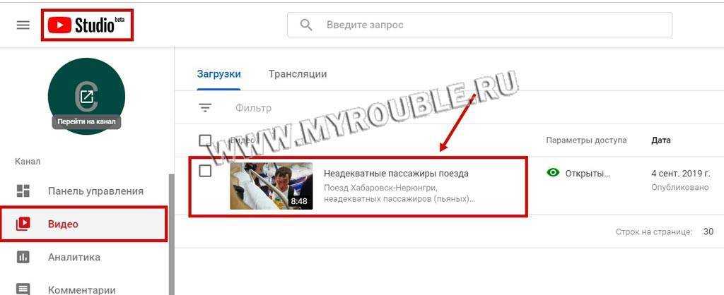 - Заходим на страницу своего канала и переходим в менеджер видео.