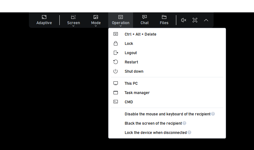 AnyViewer is the free third-party remote desktop software for Windows. The way to end a remote session completely on AnyViewer is quite easy compared to Remote Desktop. During a remote session over AnyViewer, you just need to click Operation and Logout; then the whole remote session will completely end. See, it’s pretty easy.