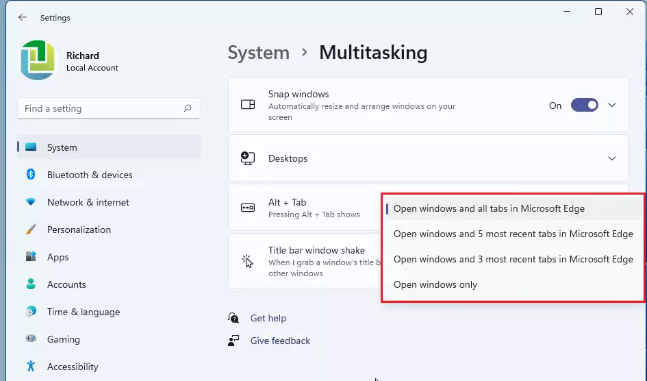Вот как настроить Клавиши Alt + Tab в Windows 11.