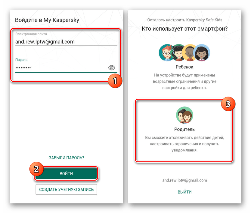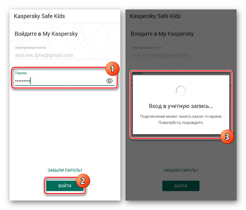 Кроме как с телефона ребенка, деактивировать работу программы можно с вашего Android, назначенного в качестве родительского. Для этого прежде всего откройте приложение и выполните авторизацию с использованием соответствующих логина и пароля.