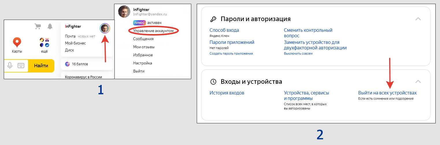 Примеры выхода из аккаунтов Яндекса на компьютере и телефоне
