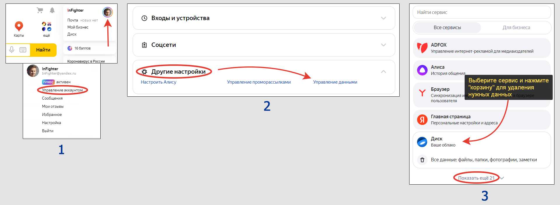Удаление данных с отдельных онлайн-сервисов в аккаунте Яндекс