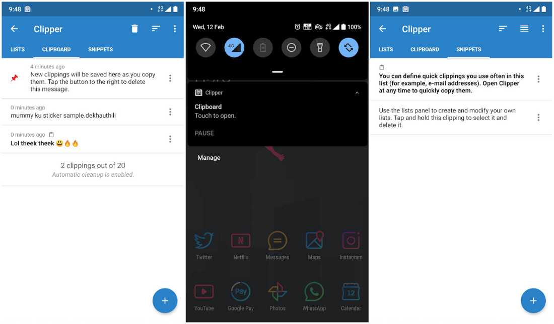 Clipper Clipboard Manager является одним из самых популярных приложений-буферов обмена в Play Store. Здесь есть немало полезных функциональных возможностей, которые упрощают контроль над содержимым буфера.
