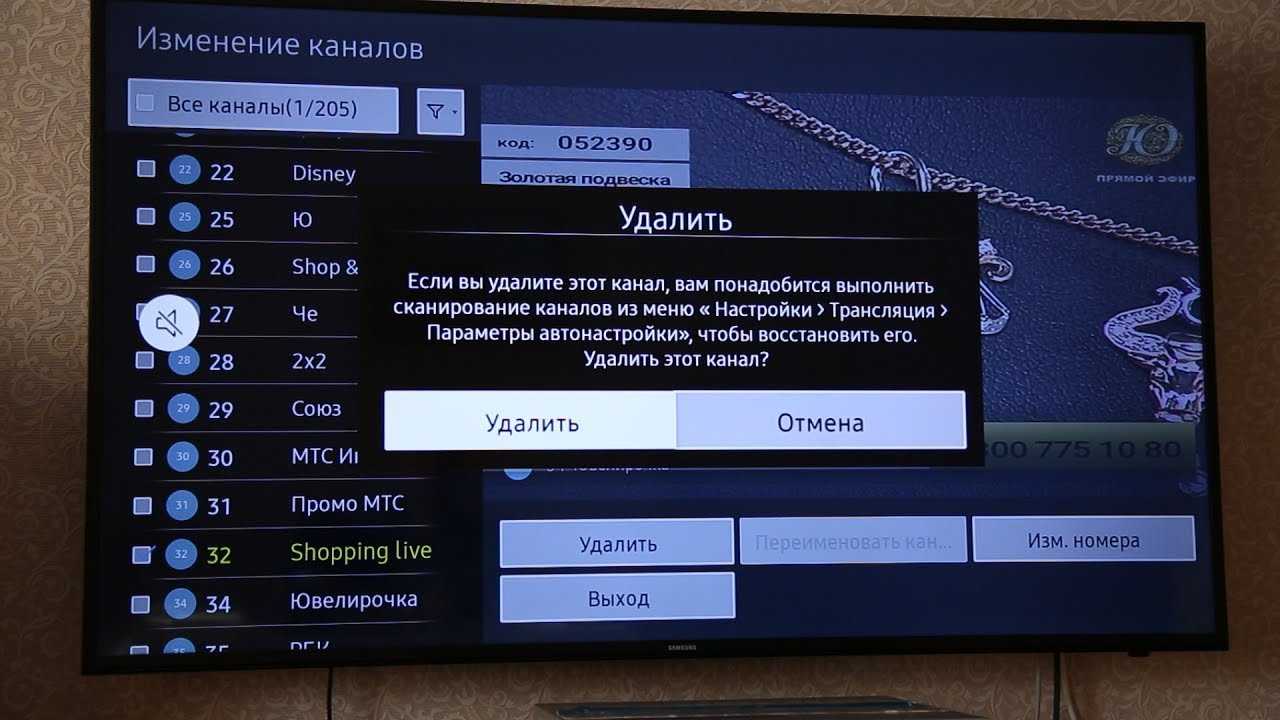Для удаления ненужных на каналов на телевизоре Самсунг К-серии необходимо: