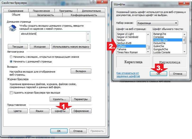 Кроме того, выбрать подходящие шрифтовые параметры для работы в интернете можно и в настройках самого браузера, этот способ подходит, чтобы изменить шрифт в контакте, в одноклассниках, и любой интернет страницы.