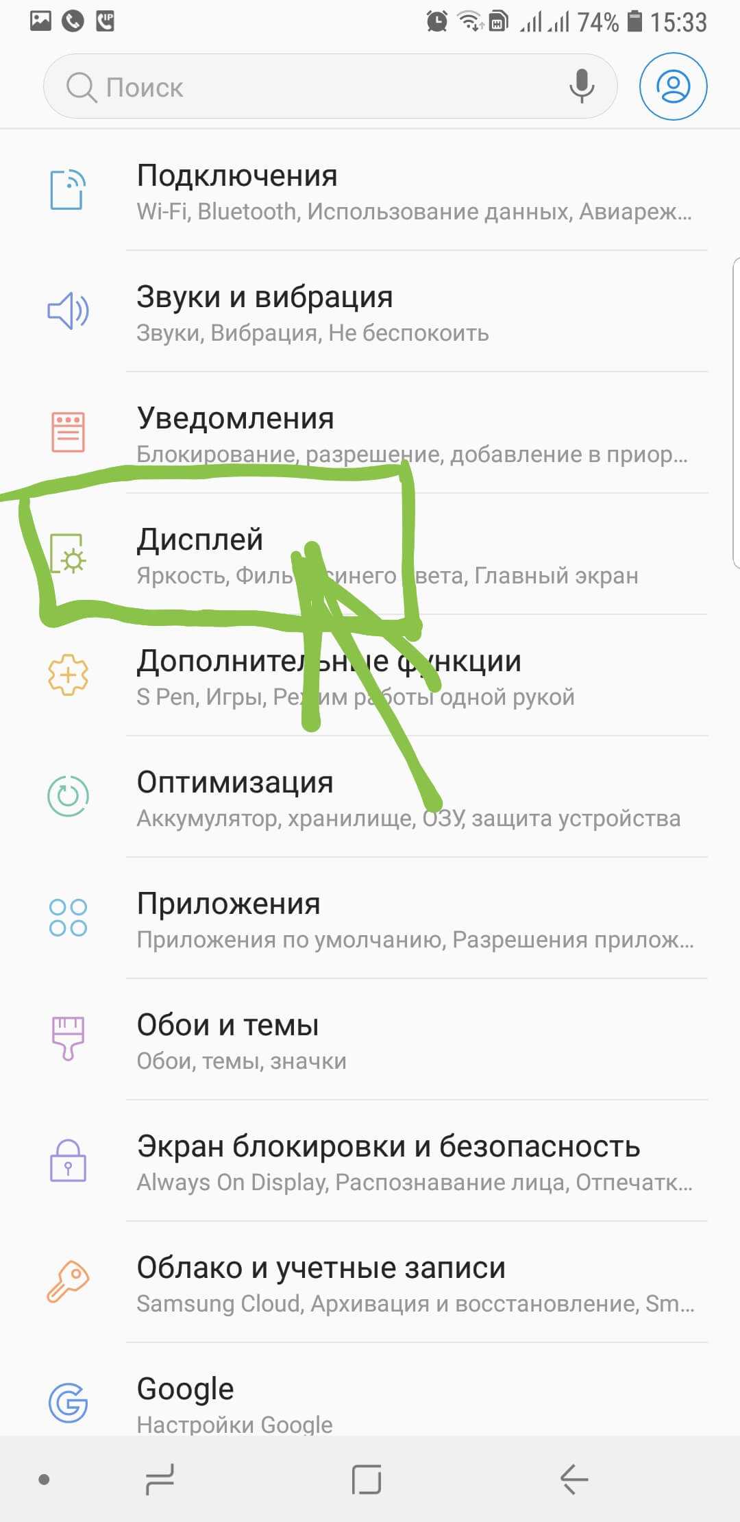 Затем прокрутите вниз до пункта «Показать» и коснитесь его. В этом меню Вы найдите параметр «Размер шрифта».