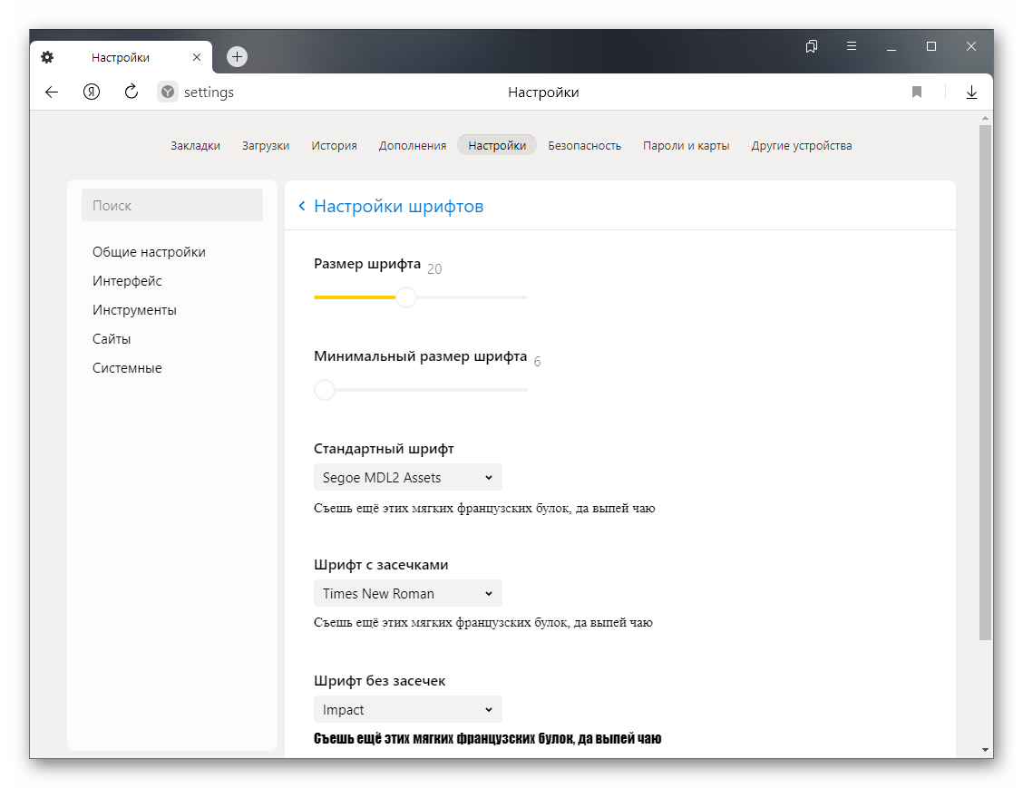 Как поменять шрифт в веб-обозревателе от Яндекса