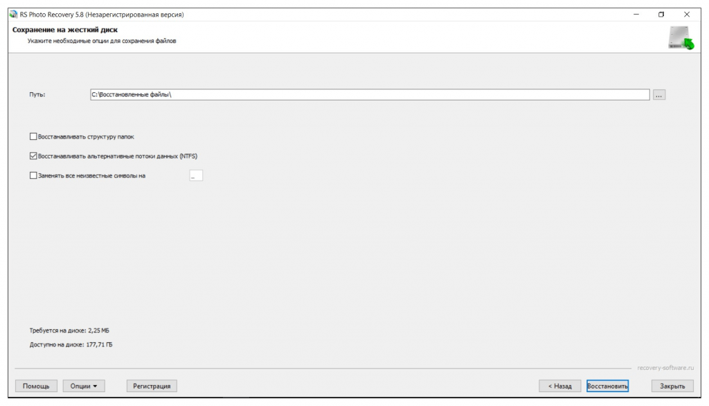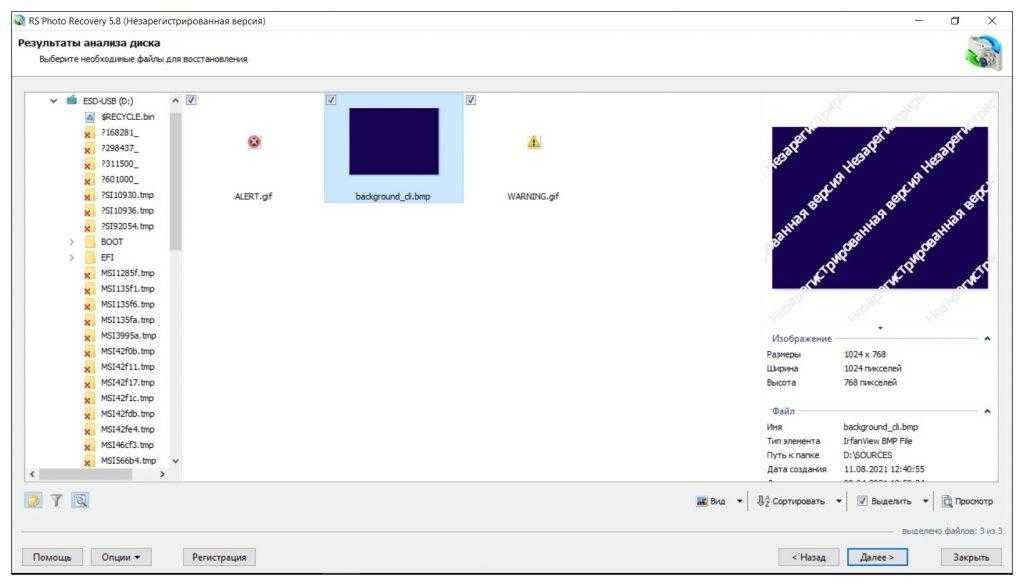 Отметьте нужные вам файлы и нажмите Восстановить. Затем выберите место, куда вы желаете сохранить фотографии или иные найденные файлы.