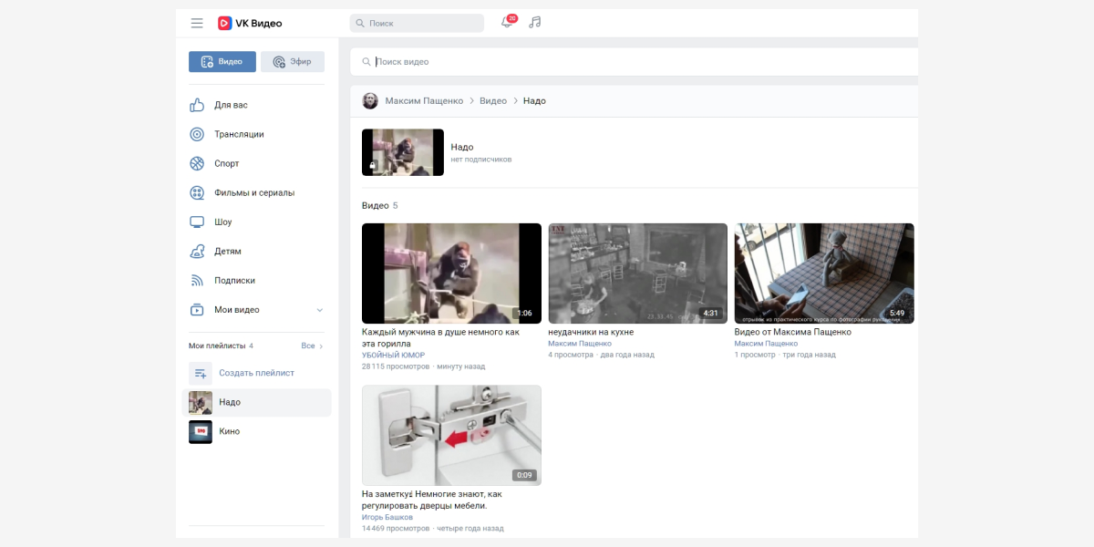 - На открывшейся странице выберите раздел «Мои видеозаписи»;
