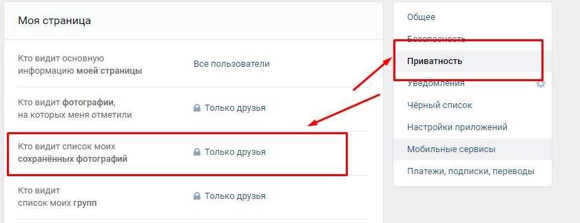 В строке «Кто видит список моих сохраненных фотографий» разрешите доступ друзьям.