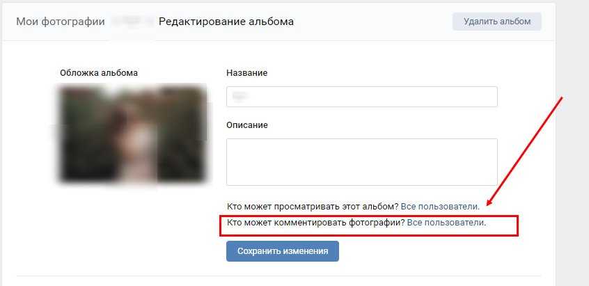 Если вы хотите открыть комментарии к альбому с фотографиями, то сделайте следующее: