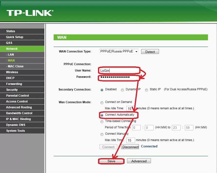 - Сохраните настройки и перезагрузите роутер.